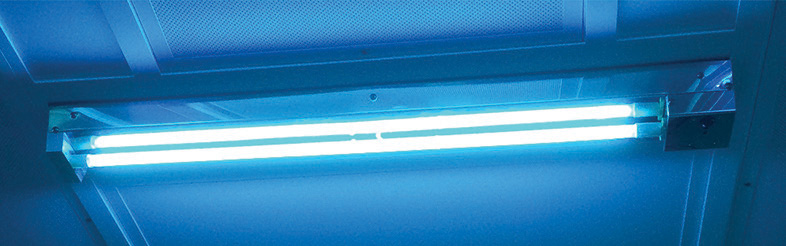 El paquete de montaje fijo de UVC proporciona una cobertura total y completa. Las áreas sombreadas se minimizan o eliminan, y solo se requiere un ciclo para una desinfección completa.